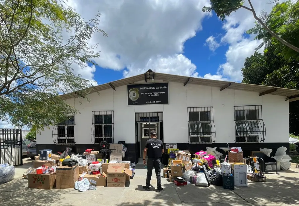 Com o avanço das investigações, os policiais identificaram e localizaram um dos suspeitos na zona rural das Salinas, no município de Poções. No imóvel, foram apreendidas centenas de mercadorias, entre eletrodomésticos, eletrônicos e suplementos. Parte do material é proveniente do roubo investigado, enquanto o restante tem origem em outros crimes patrimoniais, caracterizando também o crime de receptação qualificada.